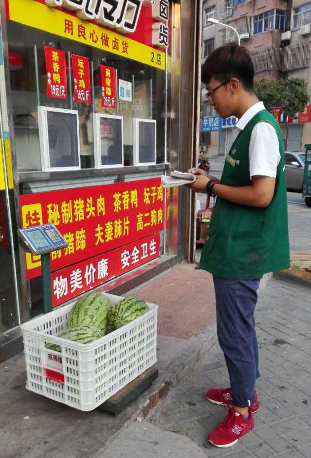图为何磊正在巡店检查