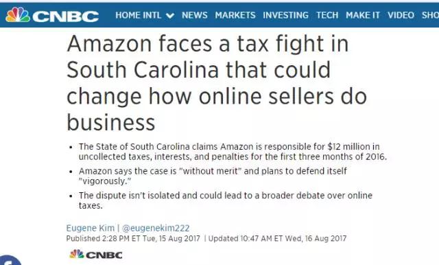 无独有偶,祸不单行,姐夫今年当上了首富,就成为了被打的出头鸟,美国媒体CNBC报道美国的南卡罗莱那州直接起诉了亚马逊,一个州政府起诉一家公司,这事有点闹大了,他们起诉亚马逊2016年第一季度没有按州税法规定缴纳第三方卖家的销售税,涉及税收金额1200万美金。为嘛只起诉去年第一季度呢?这是个什么原因,Mark想了很久都没想出来。