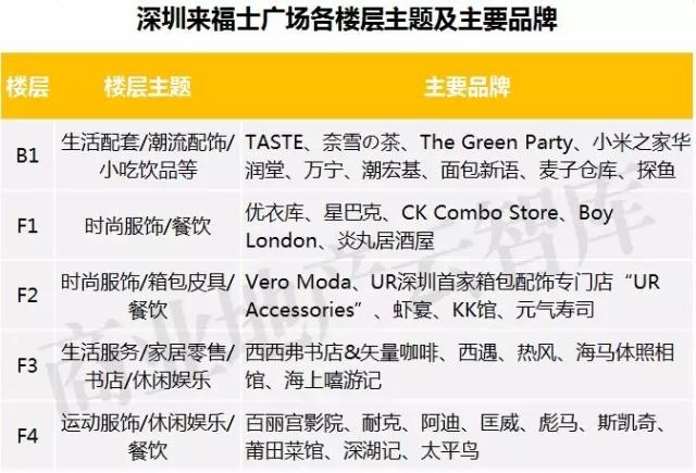 负一层到5层共计引进了200余个品牌,在商家选择上,侧重首入深圳的品牌、首发概念店、精品旗舰店和市场上独一无二的亮点品牌。