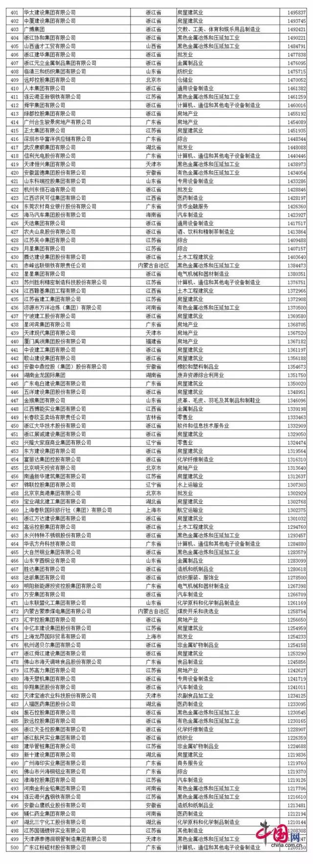 2017年中国民营企业500强榜单24日在山东济南揭晓。