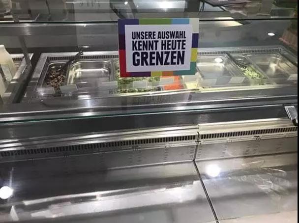 服务员仍然带着笑意,耐心解释,“亲爱的顾客朋友们,感谢你们光顾Edeka。今天是我们超市的‘国货日’,为了这一主题,我们决定下架所有的外国食品。今日,只卖纯正国货!”