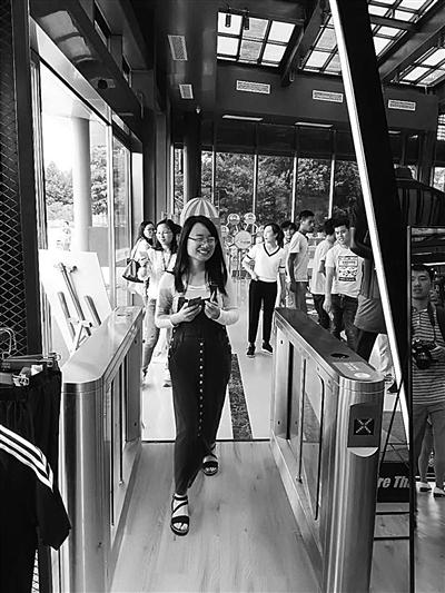 “无人超市”如何购物?记者按照操作指南体验了一把:先扫码下载一个APP,绑定自己的银行卡,再自拍一下脸,两者就绑定在一起了。走到超市入口处,对着摄像头刷个脸,“嘀”的一声,对面摄像头上方的屏幕显示出记者的名字,闸机应声而开。