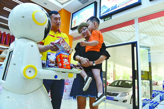 你好,欢迎光临!进口零食区域在这边,请跟我来。”凡一进怀远门加油站的客户,便会被智能机器人导购——“松果一号”标准的导购话语所吸引。