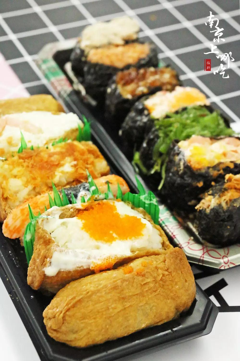 种类丰富且食材新鲜,使用的是东北优质大米,入口软糯而不失嚼劲,饭醉菌最爱的是稻菏寿司,入味豆皮包裹香浓沙拉酱和鱼子酱,口感丰富,回味无穷。