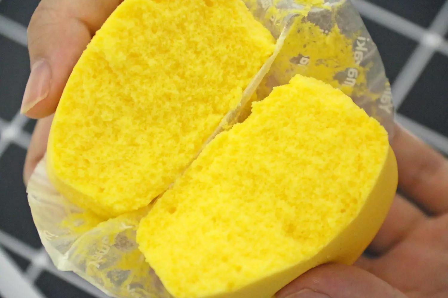 这次买到的是芒果味的芙蓉蛋糕,看起来就是非常绵密柔软的质感。