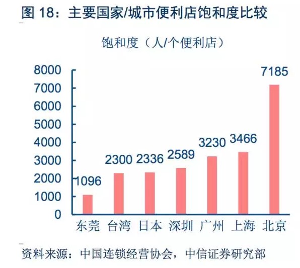 主要国家/城市便利店饱和度比较。图片来源:中信证券