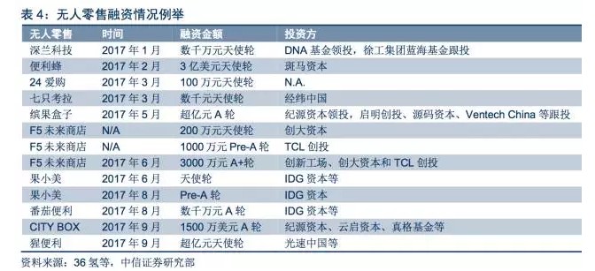 创业团队,以深蓝科技Take go、缤果盒子、F5未来店为代表,且大部分已经获得天使轮或A轮投资。