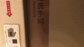 镜面下方的电子屏幕上不仅有洗手液和擦手纸的标志,中间还能看时间。这个也是我们跑的几十家洗手间中唯一一个有此功能的。