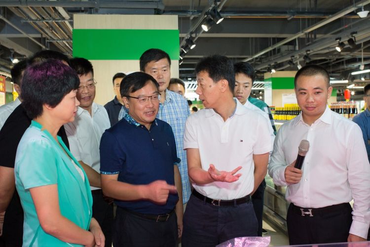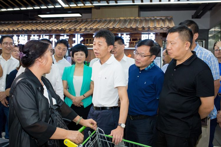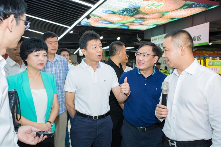 9月24日,贵阳市市委副书记、代市长陈晏,副市长刘玉海,市政府秘书长刘本立,市政府应急办常务副主任谭承忠 ,南明区委书记朱丽霞,南明区区长朱刚,市商务局局长蔡心红等市区领导一行莅临合力惠民生鲜超市南浦路店开展调研考察工作。