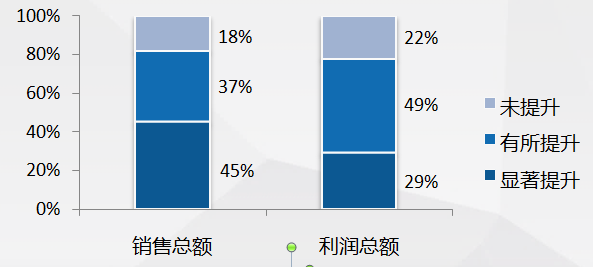 82%的制造企业认为网络零售对其销售总额有提升作用,78%的制造企业认为网络零售对其利润总额有提升效果;77%的制造企业认为网络零售扩大了销售市场的覆盖范围,87%的制造企业认为网络零售扩大了其市场份额。