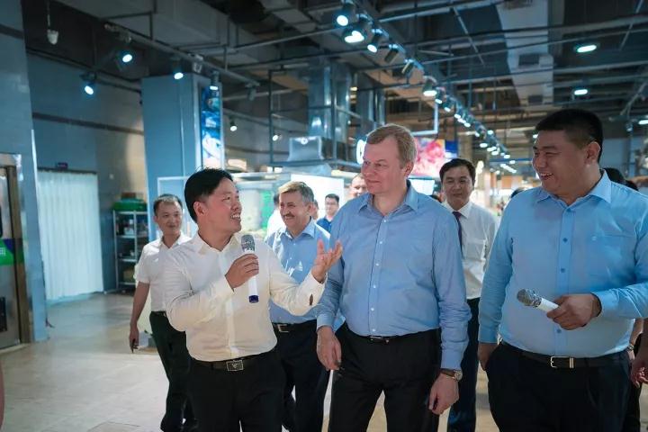 当天下午4点,在王填董事长的热情带领下,白俄罗斯莫吉廖夫州执行委员会主席多马涅夫斯基一行先后参观了购物中心、超市、梅溪书院、梅溪欢乐城、尚电等主要业态,并在梅溪书院会议室进行了简单的座谈,最后在万达影院vip厅体验并观看了企业宣传片。