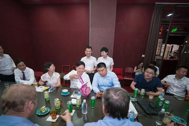 走进梅溪书院,这个充满文艺气息又不失时尚格调的场所让考察团们倍感振奋,这场座谈开得异常轻松,满桌的酒水饮品,王填董事长还特地拿出中国本土食品给考察团品尝,大家畅所欲言,场面一团和气。
