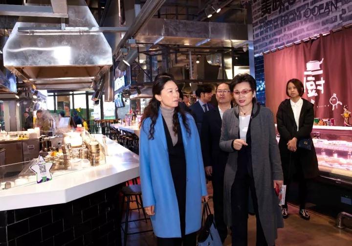在精品超市梅溪湖店,陈兰总裁一行重点参观了鲜食演义区域。只见广式茶点区域,老火汤冒着腾腾热气,在这寒冷的天气,在宽敞明亮的环境中,喝上一碗热汤,滋润干裂的口唇,温暖冰冷的身体,是再幸福不过的事情了。张露丹副董事长介绍,鲜食演义营业以来,带动所在大卖场销售同比增长30%。业绩之外它给门店带来人气,更多年轻的消费者和家庭型消费群体走进步步高。听完介绍,陈兰总裁表示出了极大的兴趣,并对商品种类、食材加工等问题进行了深入交流。随后,一行人参观了梅溪书院、梅溪欢乐城等梅溪新天地主要业态。