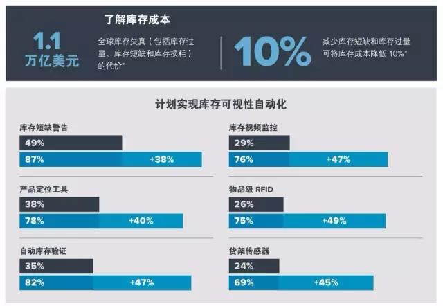 ●根据调查,消费者不满的主要原因包括商店之间的定价不一致、以及无法找到所需的商品——无论是因为缺货、或商品在店中位置的错误摆放。73%的零售商计划通过自动化、传感器和分析技术实现其供应链的实时可视化,从而解决这些问题。