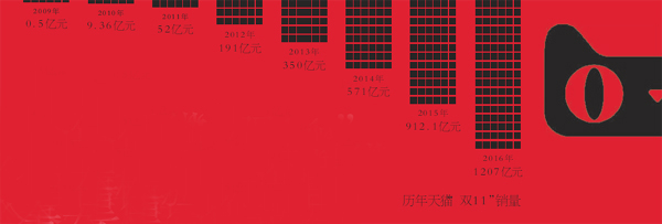 从2009年首届“双11”0.5亿元的销售额,到去年创下1207亿元的单日销售纪录,人们已经习惯了天猫在“双11”不断刷新销售数字的现象。但对天猫自身来说,这似乎已经不再是太过值得关注的事情。正如阿里巴巴集团董事局主席马云在去年“双11”时所说,“‘双11’已经不再是一个销售数字,希望能够通过‘双11’推动全中国各个行业的进步”。