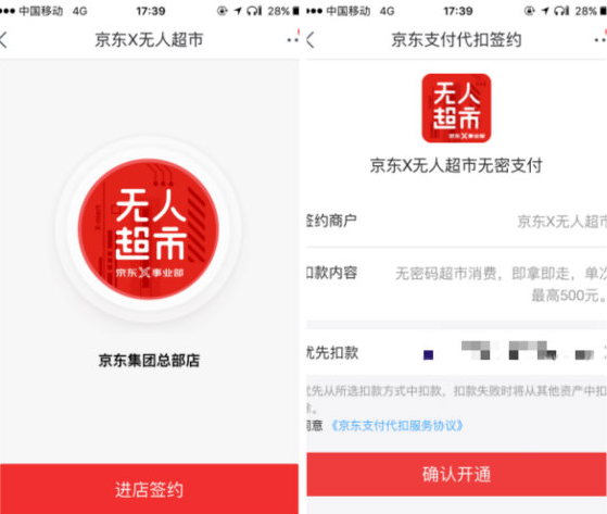 和京东无人便利店一样,进店之前需要录入人脸信息,并开启免密支付。该免密支付功能仅针对店面本身,和京东的网上支付信息没有直接关联。