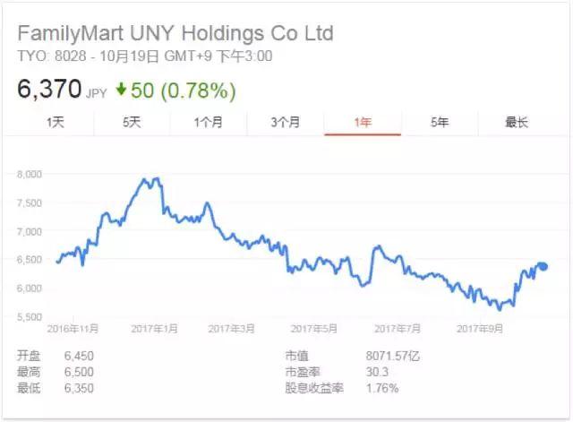 ▲过去一年全家股价走势(图片来源:Google Finance)