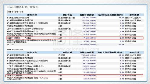 而回看股权部分,我们发现了个很有意思的地方。从未出现的“全国社保基金—五组合”新出现在白云山十大股东的行列中。截止到三季度末,社保基金共持有716万股,持股比例达到0.44%。