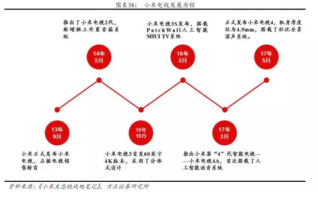手机、电视、路由器是小米自身专注的三条产品线。小米电视经过多代革新,2017年5月18日正式在国内发布,机身厚度仅为4.9mm,除了纤薄的机身,还搭载了杜比全景深声系统。