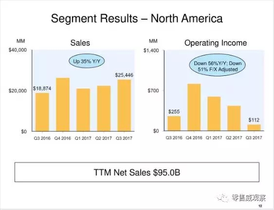 ▲北美市场:销售收入同比增加35%,营运收入同比降低56%
