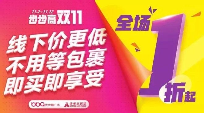 11月2日起,步步高百货所有门店线上线下同步开启火爆抢购。
