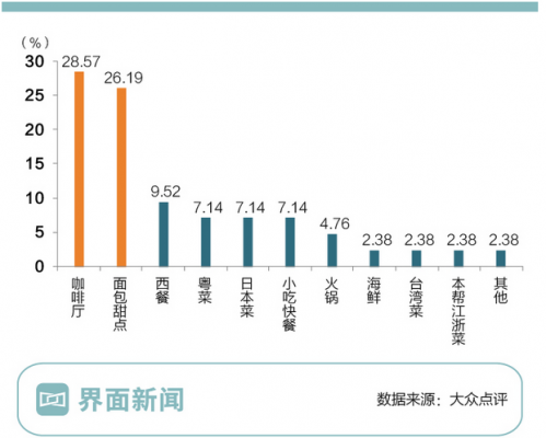 “网红餐厅”的类型分布