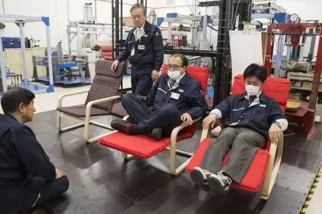 尼达利的员工和质量控制与测试部门的同事一道检测一款座椅