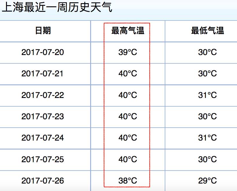 要知道,在过去的一周里,上海的气温简直就是“大蒸笼”!!接连多天40°C,注意下图框选区域: