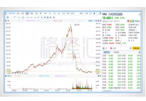 曾经美国有个堪称美股界比特币的公司——凡利亚药品国际(VRX)——这家公司用了5年半股价翻了18倍,也仅用了1年半股价蒸发了96.83%。公司的商业模式很简单,专门收购在专利保护期内或者独家品种的药,然后大幅提高药价——这种提价不是普通的提价,是毫无道德的提价,把几美元的药直接提价到几百美元,公司曾经将旗下五款产品涨价800%以上,又因为这些药必须服用,商业保险、患者不得不掏腰包。