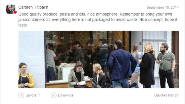 相比于传统超市明亮的灯光和喧嚣的导购声,original unverpackt能带给顾客不一样的购物体验。