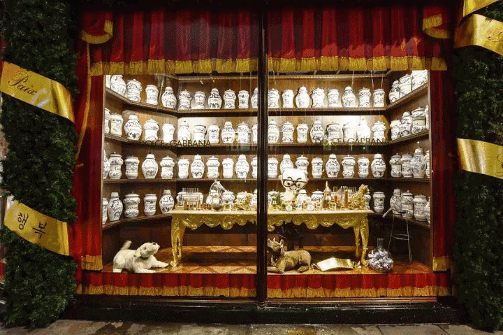 这组橱窗的灵感来源于西西里木偶剧院的动画,橱窗里面两个穿西装的木偶是根据创始人Domenico Dolce和Stefano Gabbana的形象设计的。