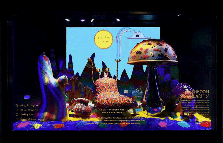 Barneys New York创意总监Matthew Mazzucca解释说:“彩色、有趣的设计可以吸引小朋友的注意力,他们才是节日的主角,同时,这个橱窗对于成人也有意义,因为他们表现的主题是成人关心的。”