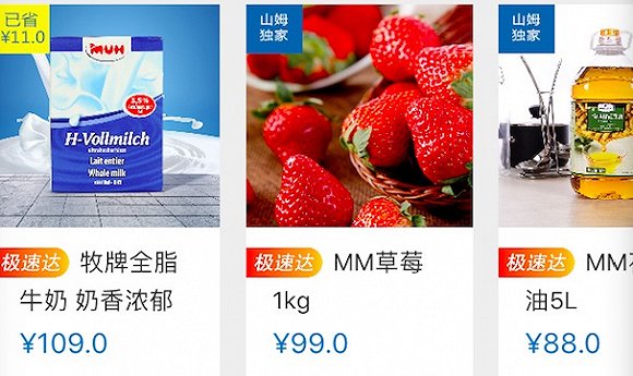 在和京东合作一年后,沃尔玛山姆会员店也开通了类似京东到家的业务——“1小时极速达”。