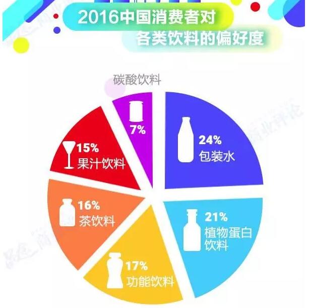 根据质量协会的报告显示,随着人们健康消费意识的升级,果汁饮料、饮用水等健康型饮料市场呈现快速增长的态势,2016年消费者偏好度最高的饮料是包装水,最低的是碳酸饮料,可见碳酸饮料已经逐渐被冷落。大健康概念是近年来主流趋势,消费者对于高糖、高热饮料的偏好度也在持续走低。