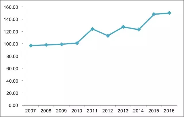 图5:2007-2016年企业杠杆率(%)