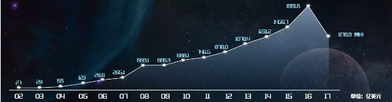 ▲2002-2017年中国对外投资增长图