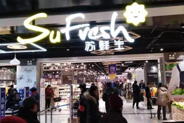 2017年4月,苏宁在徐州推出了全国首家“SU FRESH苏鲜生”精品超市,主营蔬果、牛奶、肉类、海鲜、鲜花等商品。与阿里的盒马鲜生类似,苏宁的苏鲜生超市也提供3公里范围内半小时闪送服务。