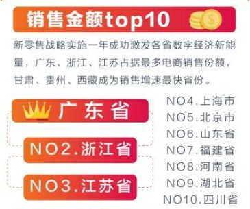 报告显示,2017年前11个月,广东、浙江、江苏作为传统电商大省,占据最多的电商销售份额。其中广东、浙江以25%、22%的占比拿下全国线上零售的“半壁江山”,江苏、上海、北京紧随其后,而山东、福建、河南、湖北、四川也依次跨入TOP10榜单。