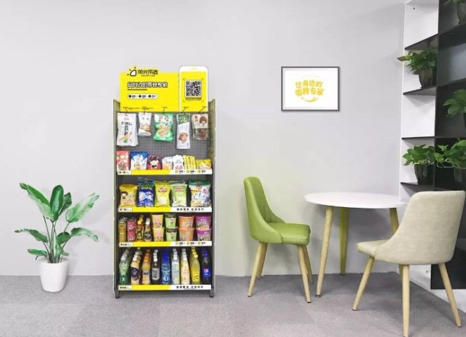(猩便利位于优客工场酒仙桥店的无人货架)