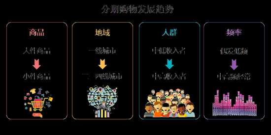 报告认为,当前我国正步入后工业化时期,一般性消费逐渐饱和,消费者升级换代欲望强烈。消费升级需要充沛的资金支持,但大多数年轻人的当期收入与消费需求间存在巨大“鸿沟”,而分期电商能够帮助消费者增强购买力和支付能力,完成跨期消费行为,提升人们的生活品质,这是其大受欢迎的重要原因。