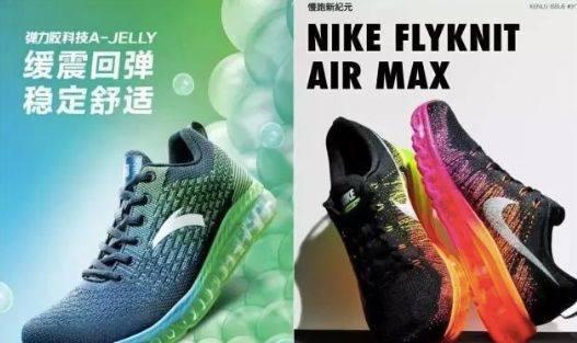 比如在抄袭路上越走越远的安踏,抄袭耐克的 FLYKNIT AIR MAX。