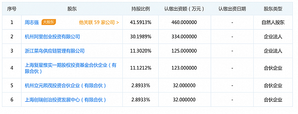 从2016年开始,菜鸟便对五家公司陆续入股。根据天眼查公开的信息,上海万象文化发展有限公司由菜鸟2016年8月入股,持股11.3%(阿里系共持股41.5%);成都东骏快捷物流有限公司由菜鸟于2016年1月入股,持股25%;南京晟邦物流有限公司由菜鸟于2016年9月入股,持股10.2%;浙江芝麻开门供应链管理有限公司由菜鸟2017年6月入股,持股36.2%。陕西黄马甲快递有限公司由菜鸟于2016年1月入股,持股40%。阿里旗下物流服务公司菜鸟网络将深度整合五家配送合作方(万象、昇邦、东骏、芝麻开门和黄马甲)。