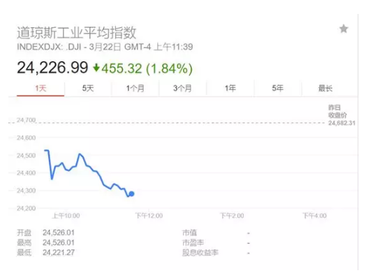 美国时间22日,美股三大股指均迎来“开门黑”,道琼斯指数开盘10分钟就下跌1%。截至北京时间22日晚23点39分,道指跌幅扩大到1.84%,下挫455点。中概股全面重挫,在特朗普签署文件之后,百度、阿里、跌幅逾4%,而新浪微博甚至跌幅超过6%。