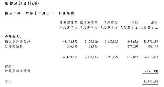 从各项业务来看,占比88%的液态奶总收入为530.15亿元,同比增长10%,几乎与2016年整个蒙牛的销售额持平。其中,常温奶特仑苏的销售达到两位数增长,销售额超过一百亿元。在特仑苏产品线上,蒙牛去年还推出了针对运动人群的M-plus高端系列产品。奶粉业务则从2016年的31.5亿元增长至40.12亿元,增幅28%。旗下雅士利完成了13个系列39个配方注册,君乐宝完成6个系列18个配方的注册,在奶粉回暖过程中受益。