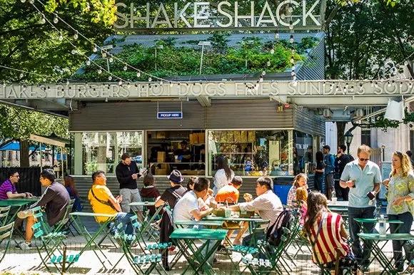 譬如从纽约起家的汉堡店Shake Shack,品牌包装已经摆脱了快餐界的红黄标配,而是以白色为主,加上简单的绿色、黑色几何图形,这样的简洁风格让它们俘获了更多年轻人。