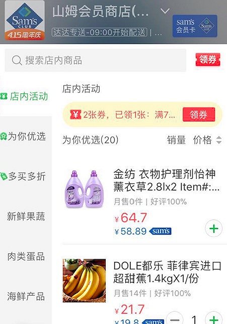 此外,针对极速达和京东到家服务,山姆还可能拆包部分商品,以满足会员对生鲜和日常商品少量多次购买的需求。