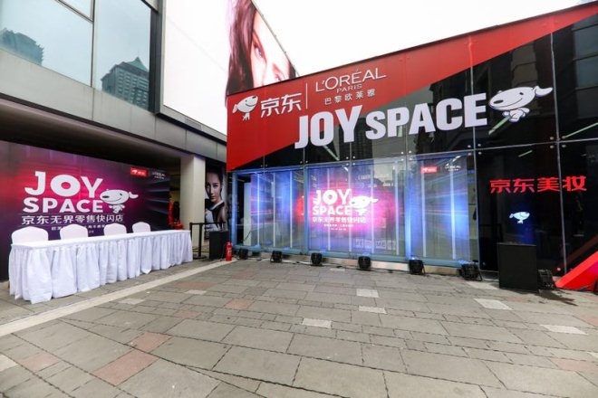 在广州的“综合场”中,京东自有品牌“京造”和八大品牌联合为消费者带来精选商品,而在上海,“JOY SPACE”换了一种玩法,京东联合国际知名美妆品牌巴黎欧莱雅开设品牌定制场。在为期七天的现场展示中,无人快闪店凭借时下热门的“快闪”模式,京东自主研发的“无人超市”技术以及丰富的互动体验装置,在上海核心商圈为消费者带来无界零售的购物体验。