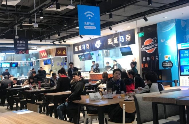 ▲盒马鲜生的就餐区,自然少不了麻辣的鲜香