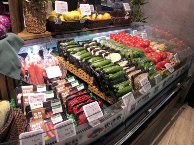 小两口平时偶尔会在网上购买蔬菜肉类,但主要是使用生鲜APP应用,“还有楼下的(肉菜)市场,生鲜食材的价格也比这些新零售店面便宜。”