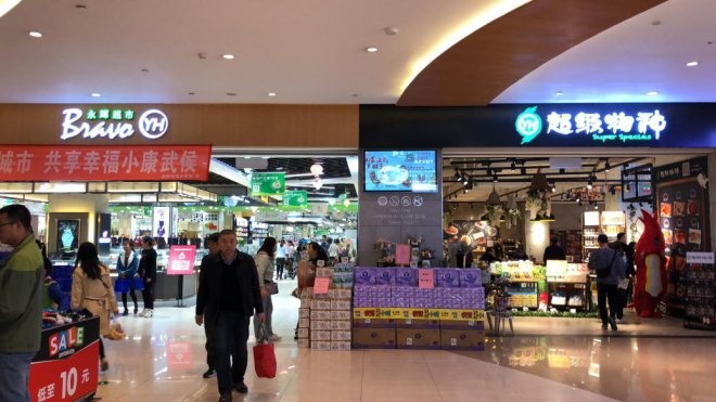 ▲在永辉超市门口,是浓浓的传统超市的特有氛围